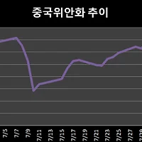 중국 7월 소비자물가지수는 전년동월대비 2.3%상승하며 예상과 부합했다.7월 수출은 전년동월대비 14.5%증가 하여 시장 예상 7.5%을 상회했다. 중국의 경제상황이 호전되고 있어 해외투자자금 유입으로 위안화가 추가로 강세를 보일 가능성이 높아 보인다.